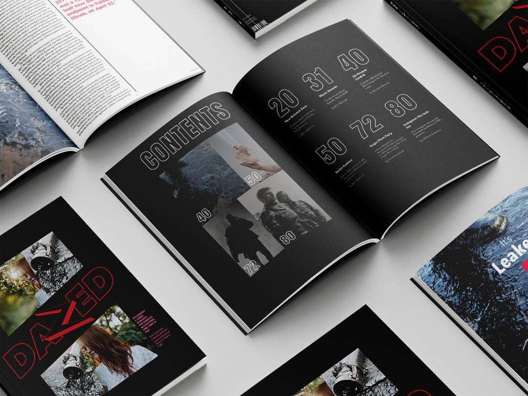 The challenge presented by this project was to chose one of the existing magazines Hole and Corner, Dazed, V Magazine, Outpost, or Bon Appetit and completely redesign it, yet still maintianing a design aesthetic that is fitting and matches the mood, character, and atmosphere of the magazine.